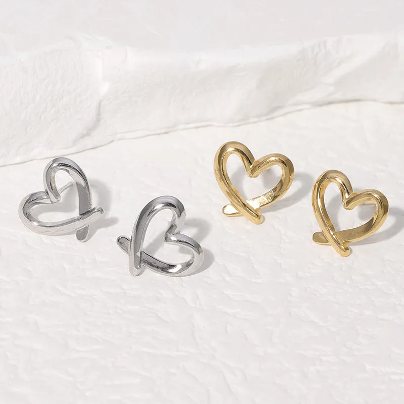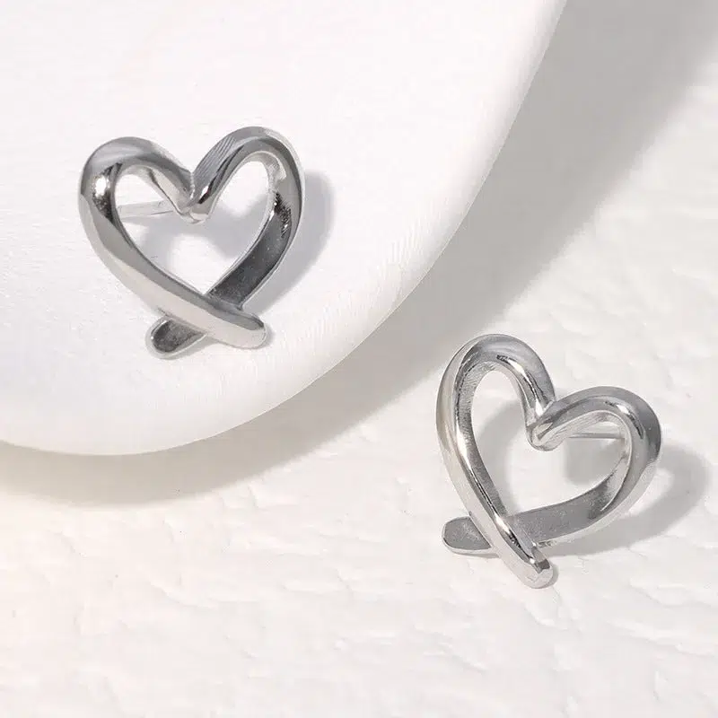 Simple, sweet, and timeless — these stainless steel heart stud earrings feature a sleek electroplated finish in a clean minimalist style, perfect for everyday wear.